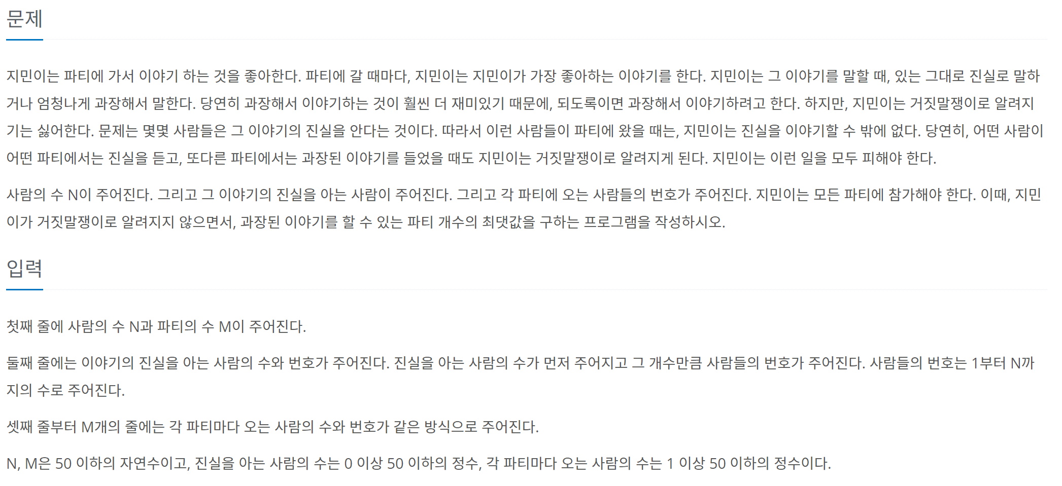 지민이는 파티에 가서 이야기 하는 것을 좋아한다. 파티에 갈 때마다, 지민이는 지민이가 가장 좋아하는 이야기를 한다. 지민이는 그 이야기를 말할 때, 있는 그대로 진실로 말하거나 엄청나게